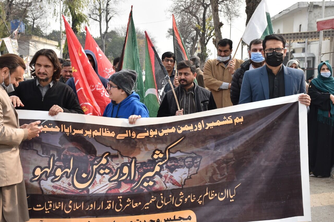 صدها نفر از فعالان سیاسی، مذهبی و مدنی به ویژه مسئولان حزب مجلس وحدت مسلمین و سازمان دانشجویان امامیه پس از اقامه نماز جمعه علیه حملات وحشیانه در یمن و کشتار مردم بی دفاع این کشور دست به تجمع زدند و سکوت حاکمان غربی به ویژه کشورهای منطقه در قبال یمن و خشونت علیه جامعه مسلمانان در مناطق مختلف جهان از جمله کشمیر را به شدت محکوم کردند.